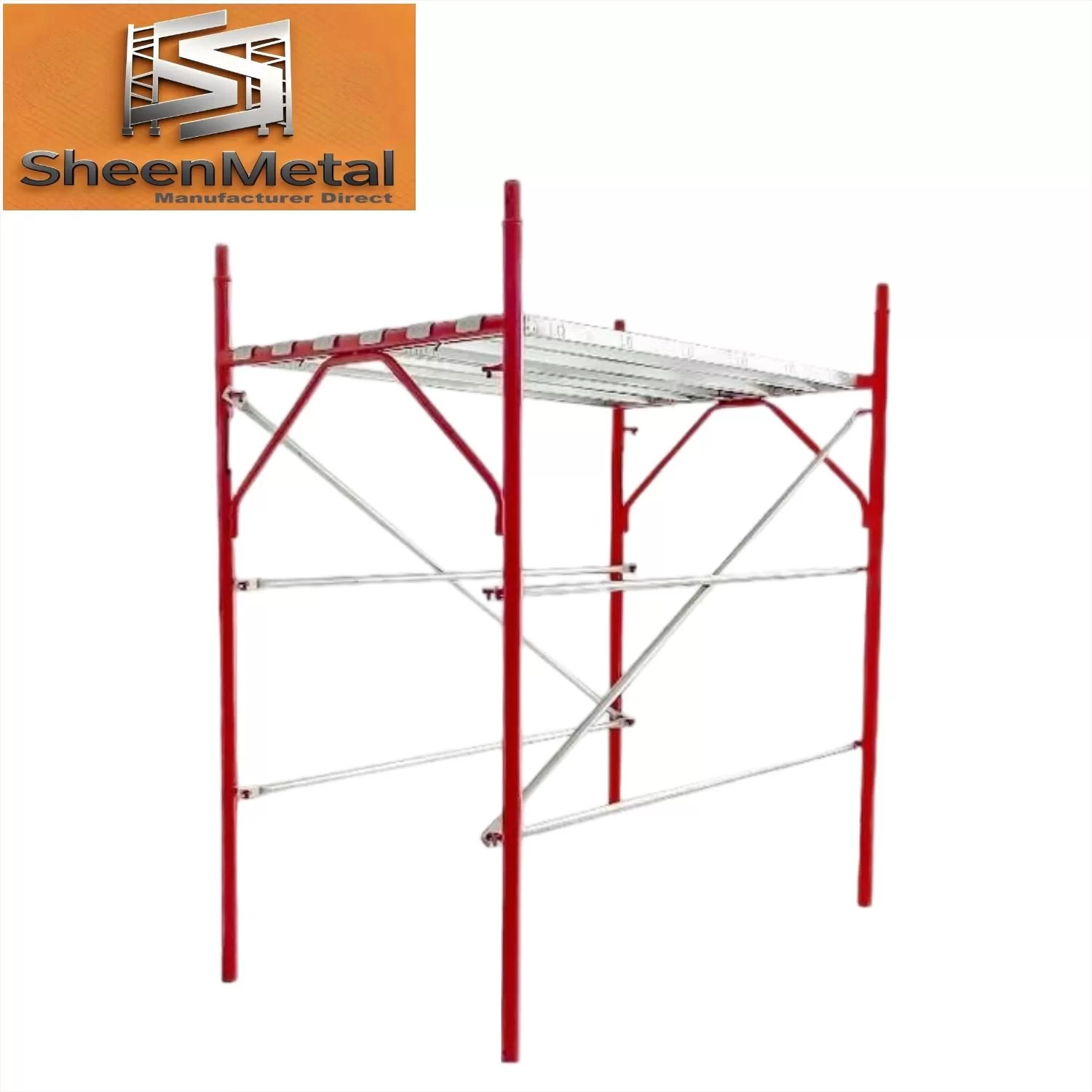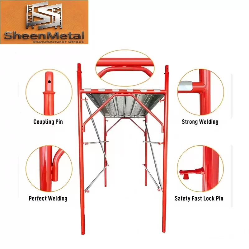 Detail Images: Close-ups of frame connections, locking pins, welds, and anti-slip platforms.